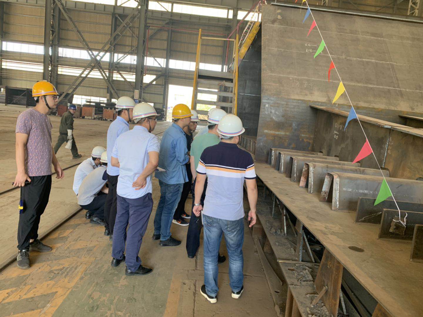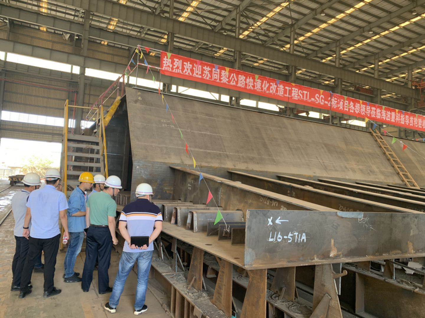 2019年7月10日,江蘇緯信工程咨詢(xún)有限公司組織在海波重科召開(kāi)蘇同黎公路快速化改造工程STL-SG-02標(biāo)(L16聯(lián)5-9節(jié)段)首輪制造總結(jié)會(huì),與會(huì)人員查看了現(xiàn)場(chǎng)首輪鋼箱梁構(gòu)件,聽(tīng)取了制造單位的匯報(bào),審閱了相關(guān)資料,討論形成最終意見(jiàn):《蘇同黎公路快速化改造工程STL-SG-02標(biāo)工程鋼箱梁首輪制作施工》內(nèi)容齊全,資料詳實(shí);首輪鋼箱梁(L16聯(lián)5-9節(jié)段)整體尺寸、線(xiàn)形符合設(shè)計(jì)及規(guī)范要求;構(gòu)件檢驗(yàn)資料齊全有效,結(jié)構(gòu)、外觀(guān)良好,焊縫無(wú)損檢測(cè)合格。如圖:
