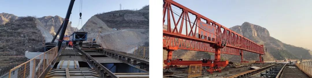 2017年7月,我司承接太行山高速公路邯鄲段全線11座鋼混組合梁共計約10公里的制造及安裝任務,鋼結構工程量約31140噸。本項目地處太行山境內,地形、道路條件極其復雜,施工難度極大。工字鋼梁現場安裝總體采用梁場拼裝、架橋機架設施工。為保證項目整體工期,公司選派優秀的生產管理人員組建了項目經理部,建設鋼梁拼裝場4個,先后投入龍門吊機17臺,高峰時期投入專業架橋機13臺,歷時8個月完成了全線540榀工字鋼梁的架設任務。