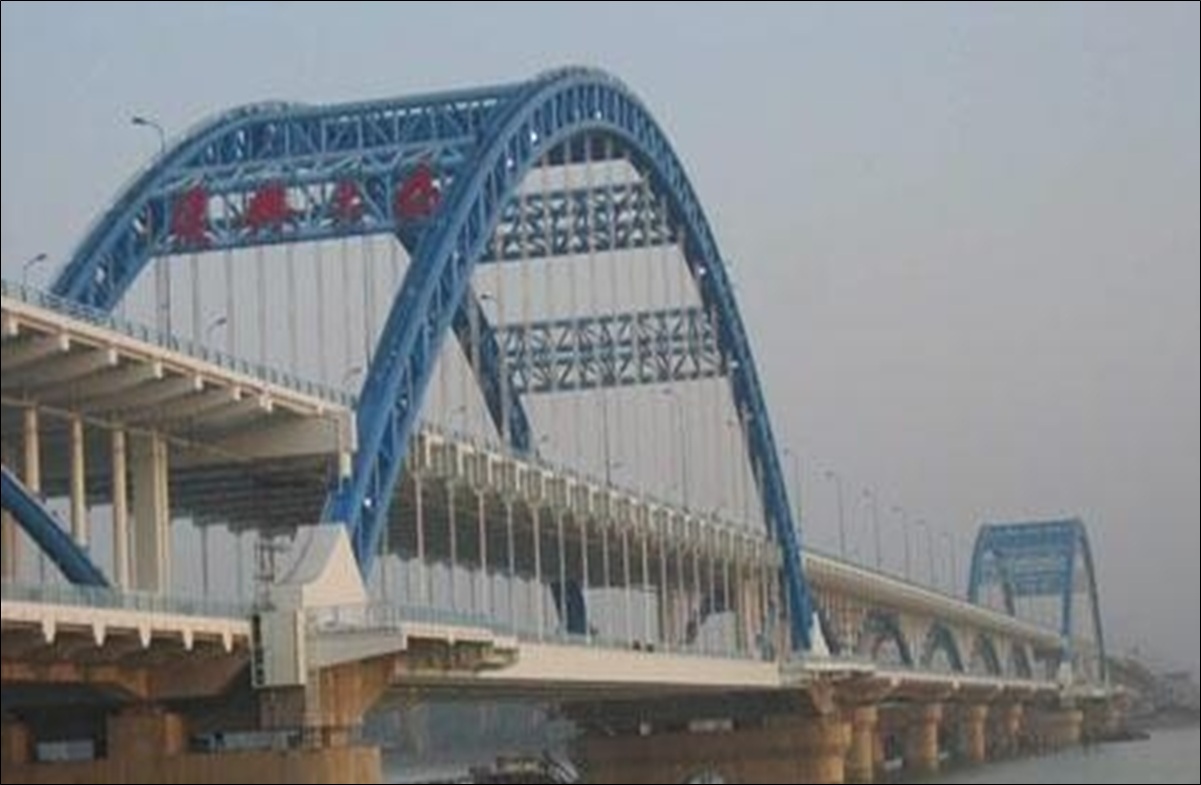 杭州錢塘江四橋(復興大橋)屬于雙層鋼拱橋,作為錢塘江上第一座特大型城市橋梁,于2004年10月建成通車,采用組合跨徑的雙層橋面鋼管混凝土系桿拱拱橋,橋梁上層設雙向六車道的快車道;下層中間為雙線輕軌,兩側(cè)設公交專用道、非機動車道及殘疾人專用設施,新穎、獨特的雙層鋼拱橋型國內(nèi)外獨一無二,是目前我國最具備綜合性功能的城市橋梁。1、工程地點:浙江省杭州市