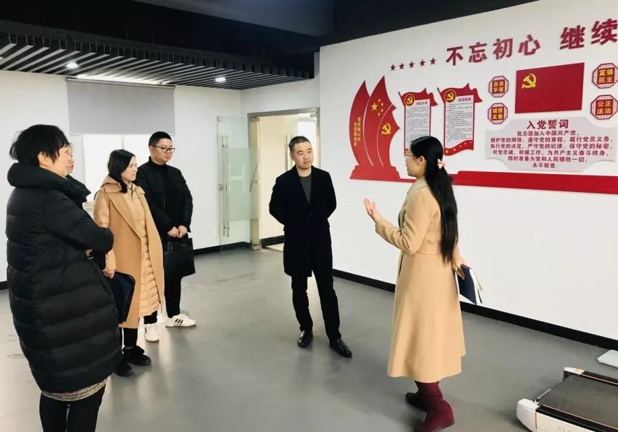 在海波重科黨支部書記侯芳的陪同引領下,王科長一行首先參觀了海波重科黨建工作紅色陣地,隨后侯書記詳細的匯報了2019年海波重科黨支部工作開展情況,以及2020年的黨建計劃。海波重科作為江夏區兩新黨建示范點單位,侯書記感謝區組織科及街道組織科對海波重科的重視及親臨指導,同時也表示黨建工作任重而道遠,但是奮進正當時,創新天地寬,此時也是信心滿滿。
