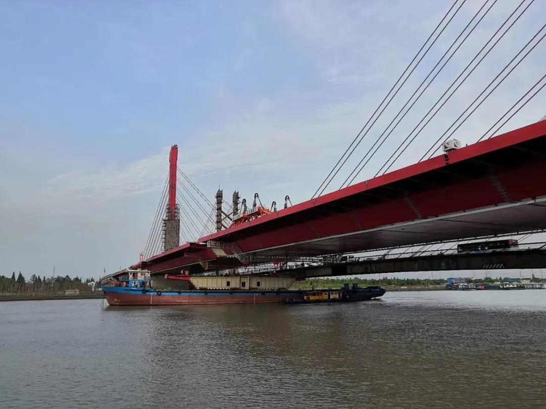 上海泖港項(xiàng)目部還通過(guò)多種創(chuàng)新技術(shù)及方案,賦予主橋諸多新的“閃光點(diǎn)”:通過(guò)采用球鋼支座和疊層橡膠支座的支承體系,大幅提升了塔梁固接體系斜拉橋的抗震性能;鋼主梁兩側(cè)設(shè)置后拼裝挑臂,通過(guò)時(shí)間和空間的錯(cuò)位實(shí)施,巧妙地增加了橋梁的安全距離,減小了相互干擾。泖港大橋改建完成后,大橋距離水面高度將完全滿(mǎn)足IV級(jí)航道的通航需要,提升航道運(yùn)輸能力,使整個(gè)平申線(xiàn)航道成為浙滬之間的一條水上高速通道,對(duì)支撐上海市國(guó)際航運(yùn)中心建設(shè)、改善黃浦江上游地區(qū)交通條件、環(huán)境質(zhì)量和防洪除澇能力具有重要作用。